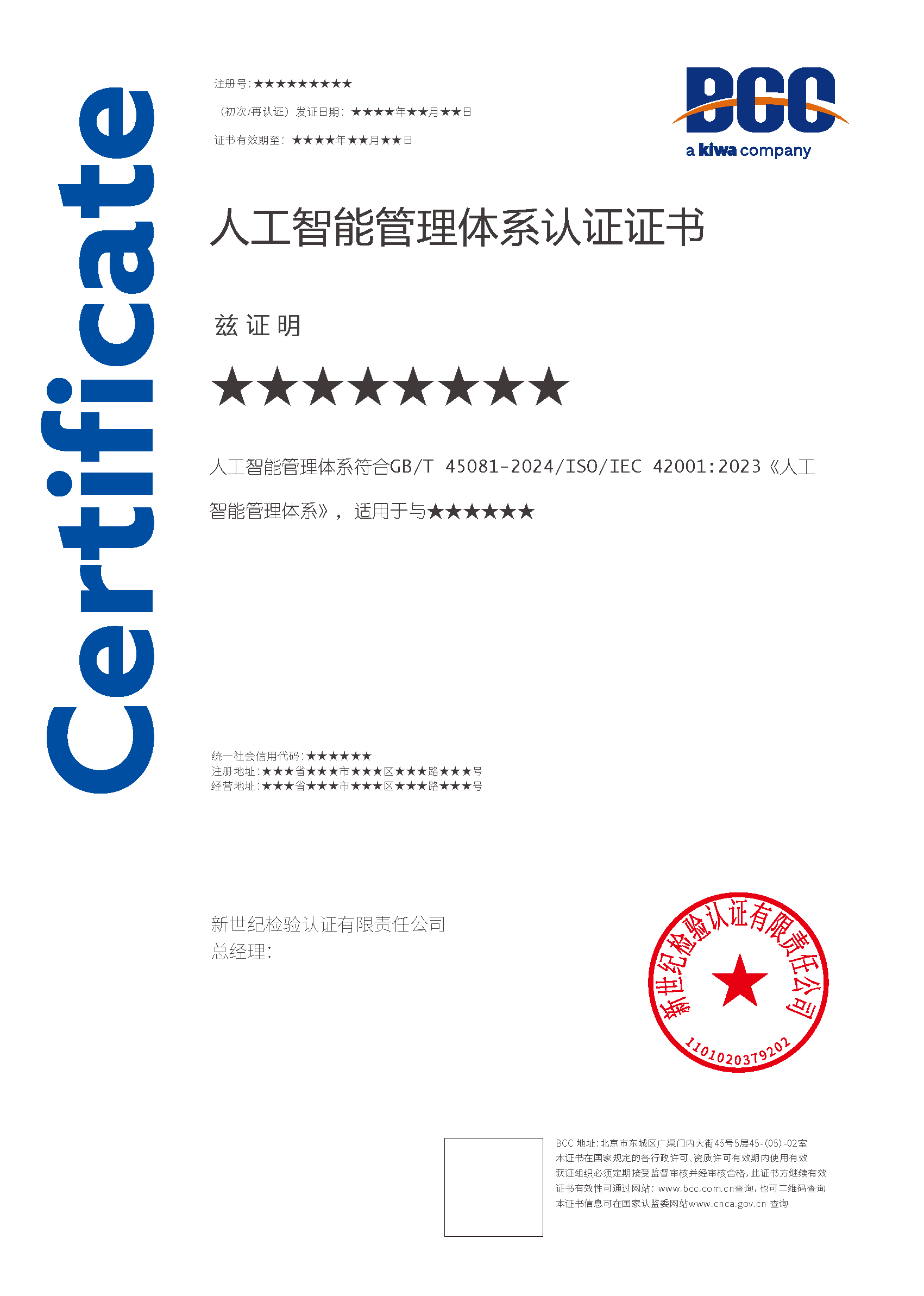 人工智能管理體系證書