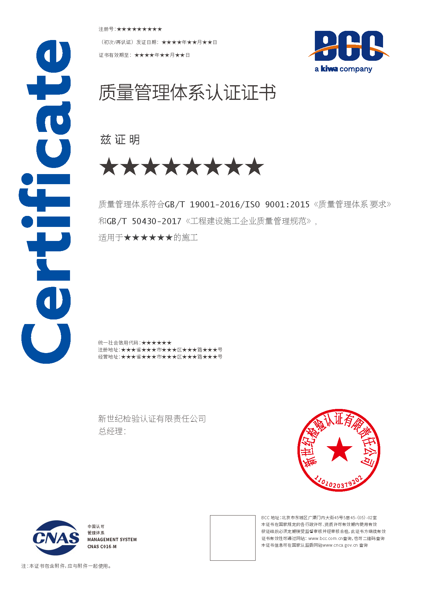 本頁(yè)涉及的認(rèn)證服務(wù)中均有對(duì)應(yīng)的《認(rèn)證實(shí)施規(guī)則》,BCC擁有其最終解釋權(quán)。任何組織及個(gè)人未經(jīng)BCC許可,不得以任何形式全部或部分使用(法律要求除外)認(rèn)證相關(guān)信息。如需獲取相關(guān)實(shí)施規(guī)則請(qǐng)用以下方式聯(lián)系獲?。弘娫?huà):010-58579316 郵箱:fwjs@kiwa.cn