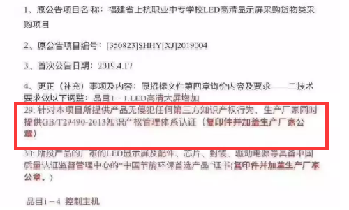 蘇州市滄浪中學(xué)校招標要求之一:產(chǎn)品生產(chǎn)廠家獲得GB/T29490-2013知識產(chǎn)權(quán)管理體系認證,3分。