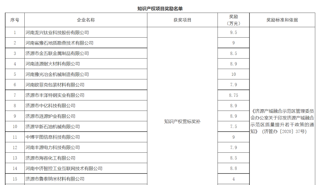 為進一步推進質(zhì)量強市建設(shè),優(yōu)化營商環(huán)境,激勵各單位、企業(yè)和個人開展質(zhì)量提升工作,充分發(fā)揮財政資金對質(zhì)量發(fā)展的促進和導(dǎo)向作用,全面提升質(zhì)量水平,提高企業(yè)核心競爭力,加快培育競爭新優(yōu)勢,建設(shè)創(chuàng)新型高品質(zhì)現(xiàn)代化示范區(qū),按照《中共濟源市委濟源市人民政府關(guān)于開展質(zhì)量提升行動的實施意見》(濟發(fā)〔2018〕22號)和《濟源產(chǎn)城融合示范區(qū)管理委員會辦公室關(guān)于印發(fā)濟源產(chǎn)城融合示范區(qū)質(zhì)量提升若干政策的通知》(濟管辦〔2020〕37號)的規(guī)定,決定對取得2021年度質(zhì)量成果的單位、企業(yè)和個人予以通報獎勵補助。