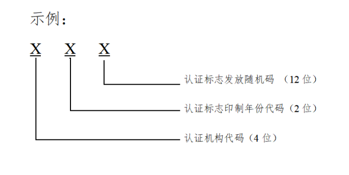內(nèi)資認(rèn)證機(jī)構(gòu)認(rèn)證證書編號為該機(jī)構(gòu)批準(zhǔn)號的3位或4位阿拉伯?dāng)?shù)字流水號;外資認(rèn)證機(jī)構(gòu)認(rèn)證證書編號為F+該機(jī)構(gòu)批準(zhǔn)號的2位或3位阿拉伯?dāng)?shù)字流水號。