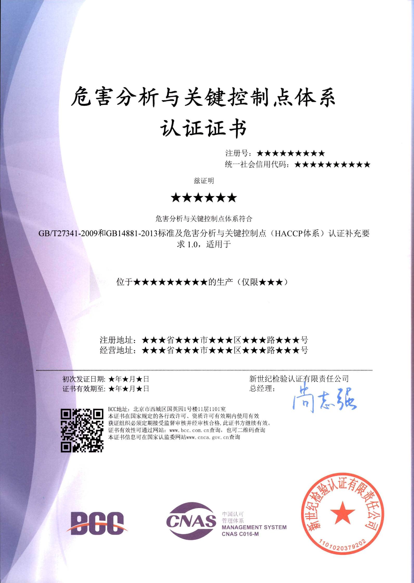 費(fèi)用包括:haccp認(rèn)證申請費(fèi)1000-1500元,審核費(fèi):按初次審核實(shí)際所需人日數(shù)(總數(shù))收取,每個審核人日的收費(fèi)標(biāo)準(zhǔn)為3000-4000元。其中的HACCP體系認(rèn)證現(xiàn)場最少審核人日,則按職工總數(shù)為50人以下,則初次認(rèn)證現(xiàn)場審核人日數(shù)為3,監(jiān)督審核現(xiàn)場審核人日數(shù)為2計算。haccp認(rèn)證證書